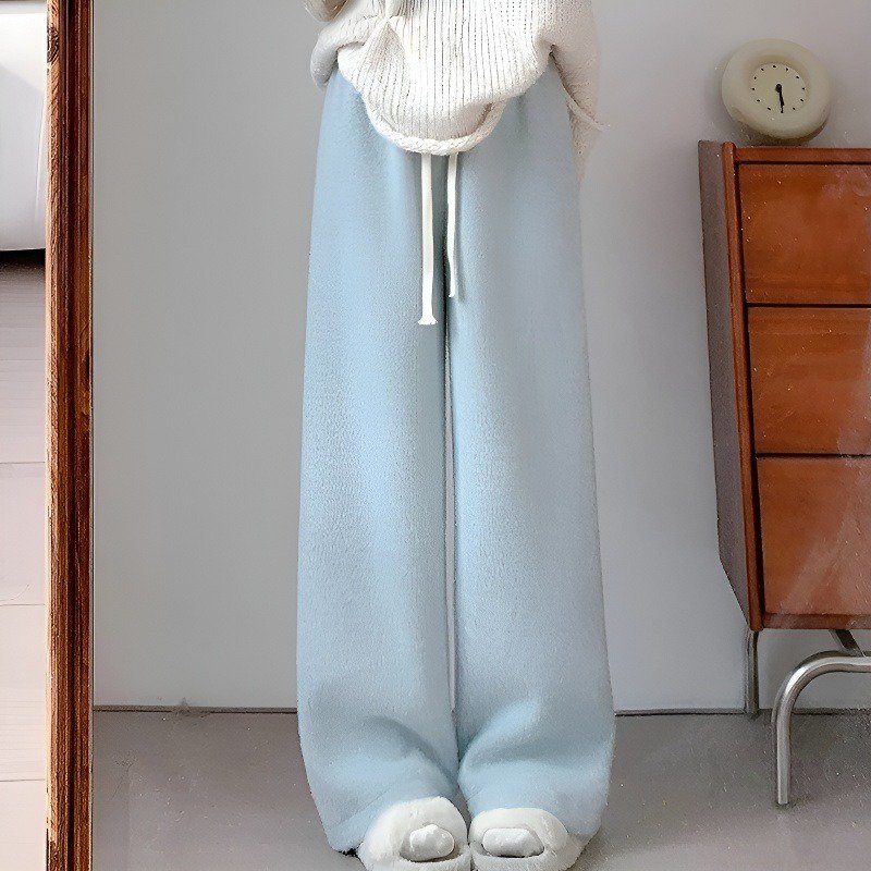 秋冬の保温裏起毛ニットワイドパンツ